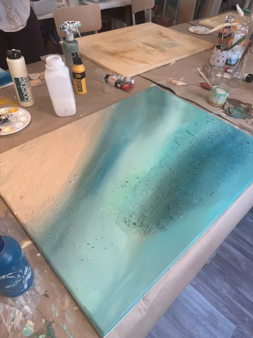 Ich zeige Dir, wie Du in Acryl mit Farben, Strukturen und Naturmotiven Deinen ganz eigenen Ausdruck findest. In entspannter Atelieratmosphäre begleite ich Dich Schritt für Schritt zur individuellen Kunst, inspiriert von Wasser, Licht und Weite.
