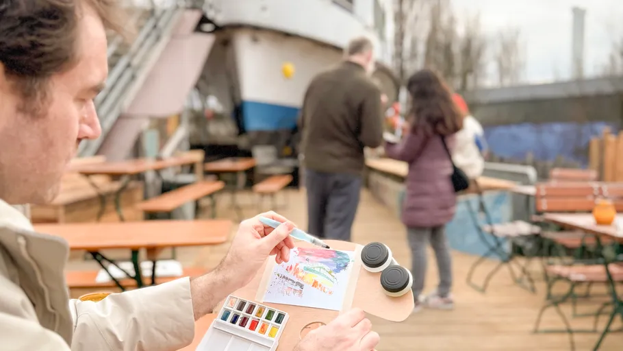 Sucht Ihr ein kreatives Teamevent oder ein besonderes Erlebnis für Eure private Gruppe in München? Bei dieser Aquarell Stadtführung verbindet Ihr Architektur mit aktiver Malerei. Gemeinsam mit Philipp, Architekt und zertifizierter Guide, erkundet Ihr das lebendige Schlachthofviertel und den Bahnwärter Thiel. Das Besondere: Ihr haltet Eure Eindrücke direkt künstlerisch auf Postkarten fest. Dank vorgedruckter Motive gelingen auch Anfängern beeindruckende Werke von Highlights wie der Alten Utting. Ein interaktives Gruppenerlebnis, das Stadtkultur und Eure eigene Kreativität perfekt verknüpft.