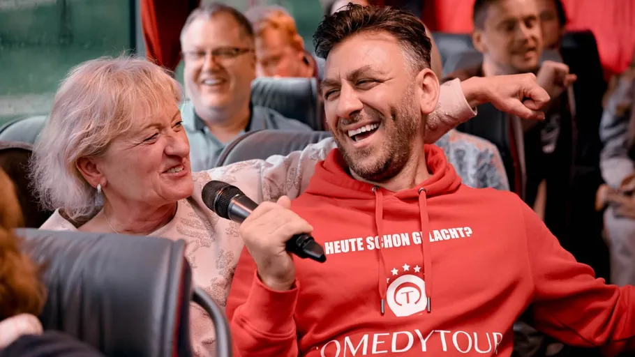 Die ComedyTour kombiniert klassische Stadtführungen mit mitreißender Live-Comedy im Bus. Erlebe Sehenswürdigkeiten und humorvolle Unterhaltung in einem einzigartigen Event, das Dir Deine Stadt von ihrer lustigsten Seite zeigt.