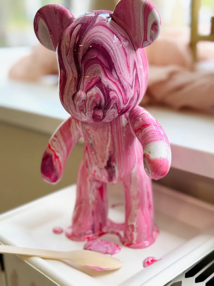Tauche ein in die bunte Welt der fließenden Farben und gestalte deinen einzigartigen Bären.