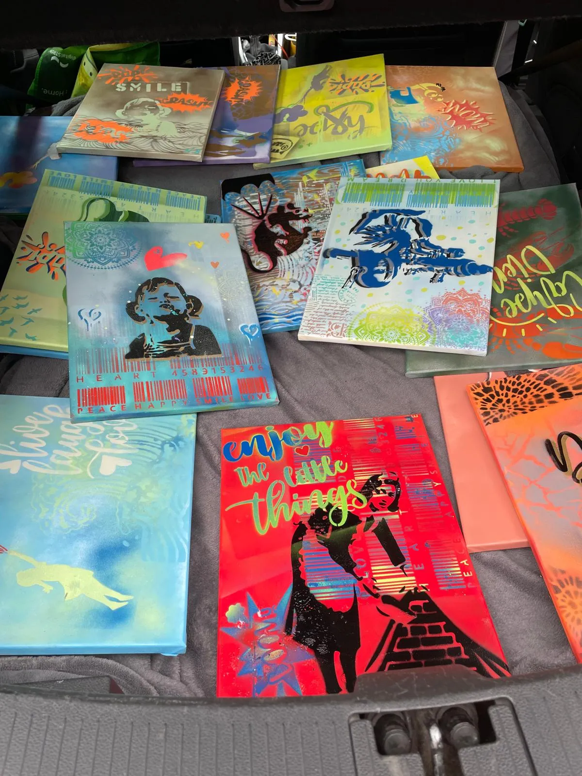 - Dann geht es an die Motivwahl, von Street Art bis abstrakt. Es können natürlich auch mehrere Schablonen kombiniert werden