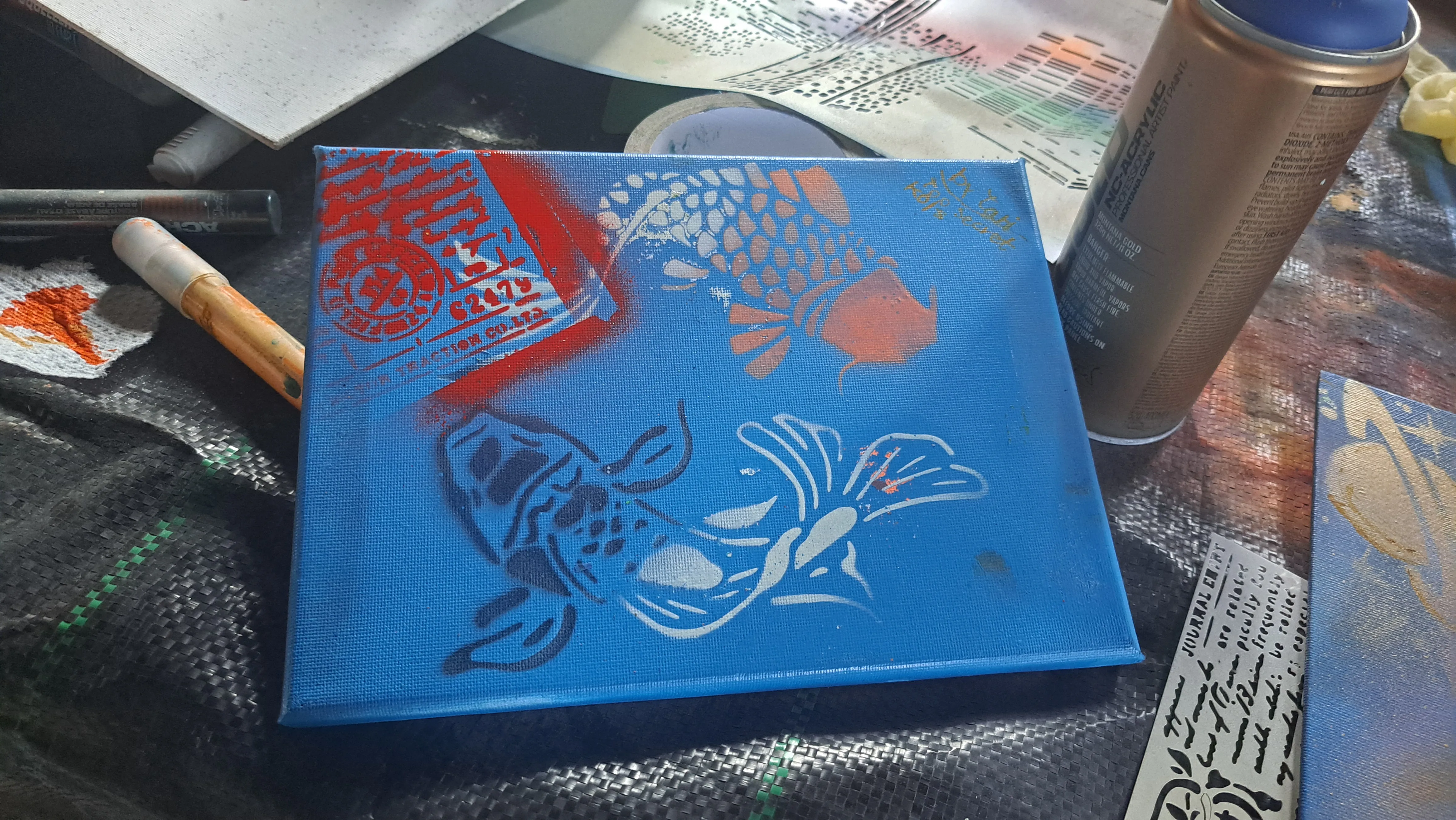 Das Arbeiten mit Dosen und Schablonen macht unglaublich viel Spaß und ist sehr facettenreich. Vom typischen Banksy Motiv bis hin zur Unterwasser Landschaft. Plakativ oder komplex. Alles ist möglich. Die Schablonen machen es Euch leicht ein perfektes Motiv auf die Leinwand zu bringen, auch wenn Ihr kein großes zeichnerisches oder malerisches Talent mitbrIngt. Wenn es dann doch mal nicht gefällt wird die Leinwand einfach neu grundiert und Ihr fangt von vorne an, es kann also nichts schief gehen.