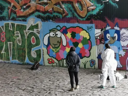 Es war ein sehr guter Workshop, um Graffiti-Sprühen unter Anleitung auszuprobieren. Die Workshopleiterin hat uns theoretisches Wissen vermittelt. Wir haben Skizzen auf Papier angefertigt. Dann gings schon an die Wand. Wir hatten ...