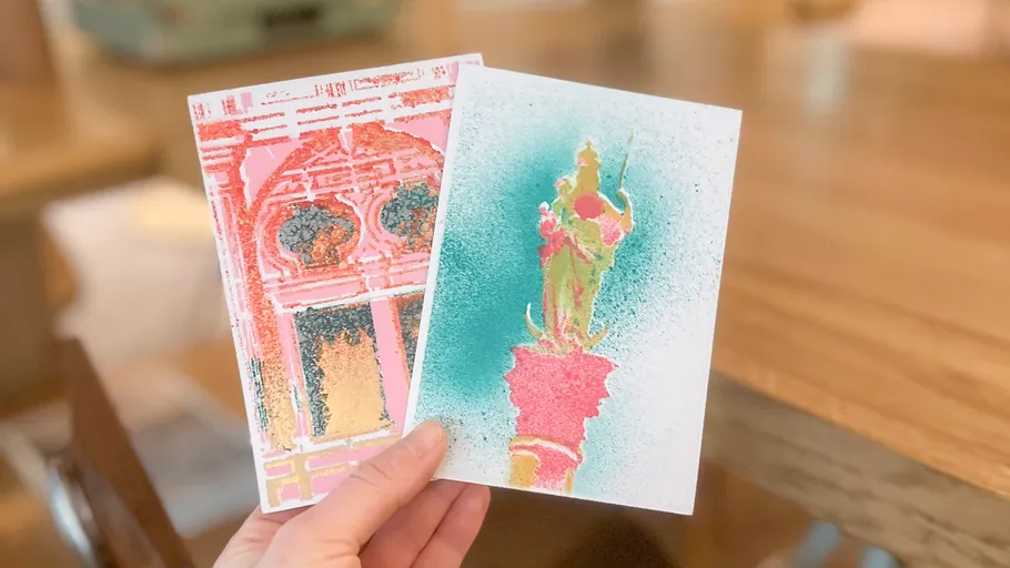 Gestaltung: Jedes Teammitglied sprayt vier individuelle Postkarten als persönliches Souvenir.