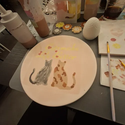 War ein sehr schönes Erlebniss. Es wurde alles erklärt. Man konnte sich aus vielen verschiedenen Porzellan aussuchen. Viele Farben und Schablonen standen zur Auswahl. Im Hintergrund lief entspannte Musik. Getränke konnten auch gek...
