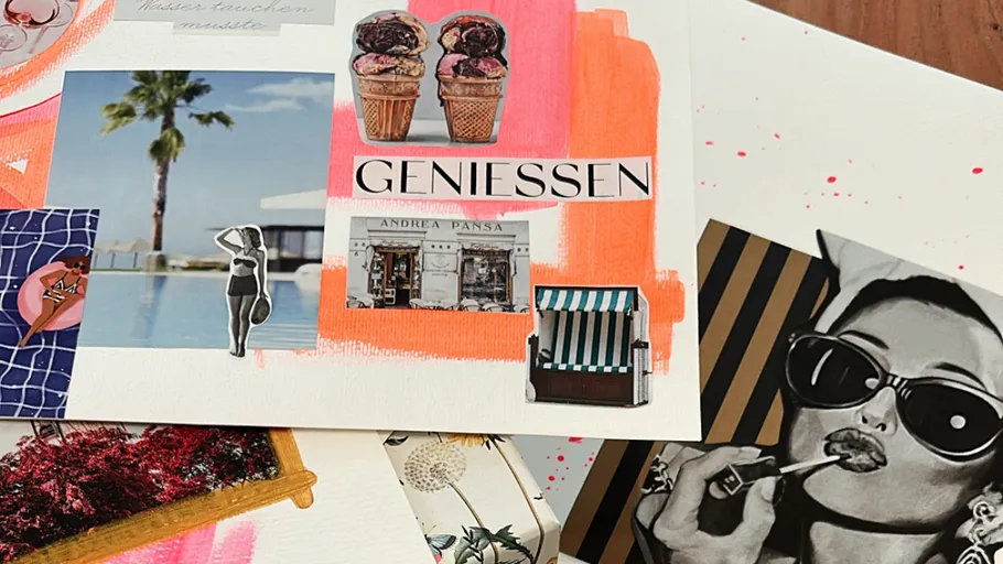 Als Designerinnen ist unsere Leidenschaft für Bilder und Text groß. Ein Visionboard vereint beides und ist doch viel mehr als eine einfache Collage. Es ist ein Manifest deiner Ziele, Wünsche & Bestrebungen und ein Reminder, am Ball zu bleiben. Mit Spaß und viel Kreativität.