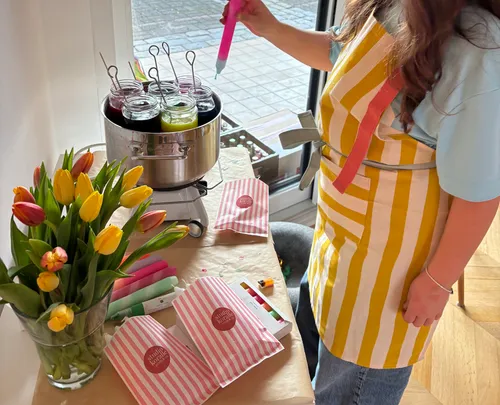 Ich komme zum vereinbarten Zeitpunkt zu Dir vor Ort und baue alle Materialien auf. Nach einer kurzen Einführung können die Kinder direkt mit dem Stempeln und Gestalten starten. Ich begleite die Gruppe altersgerecht, gebe Tipps und helfe bei Bedarf. Der kreative Teil ist ruhig, fröhlich und gut strukturiert. Optional kann das Kerzenfärben im Dip-Dye-Verfahren ergänzt werden. Am Ende nimmt jedes Kind seine Werke mit nach Hause.