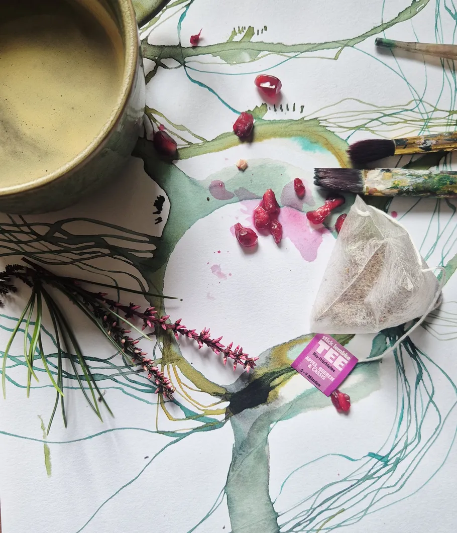 Tinte, Tee und Kaffee – drei alltägliche Zutaten, die auf dem Papier ein faszinierendes Eigenleben entwickeln. Ihre fließenden, zufälligen Bewegungen laden dich ein, den Kopf abzuschalten und dich ganz deiner Kreativität zu überlassen.