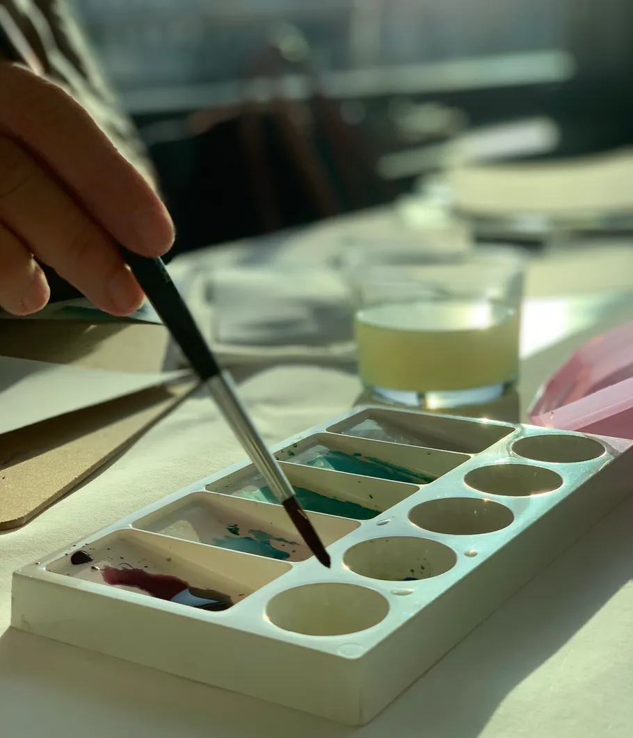 Der Kurs „Malen für die Seele“ bietet Dir eine entspannende Auszeit vom Alltag durch kreatives Aquarellmalen. Mithilfe von Musik, Meditation und kunsttherapeutischen Methoden verlassen wir das Alltags-Karussell und tauchen in unsere innere Welt ein. So kommst Du zu Deinem eigenen, ganz persönlichen Ausdruck. Wir lasieren und malen Nass-in-Nass. Ich gebe Dir jederzeit professionelle Hilfestellung.