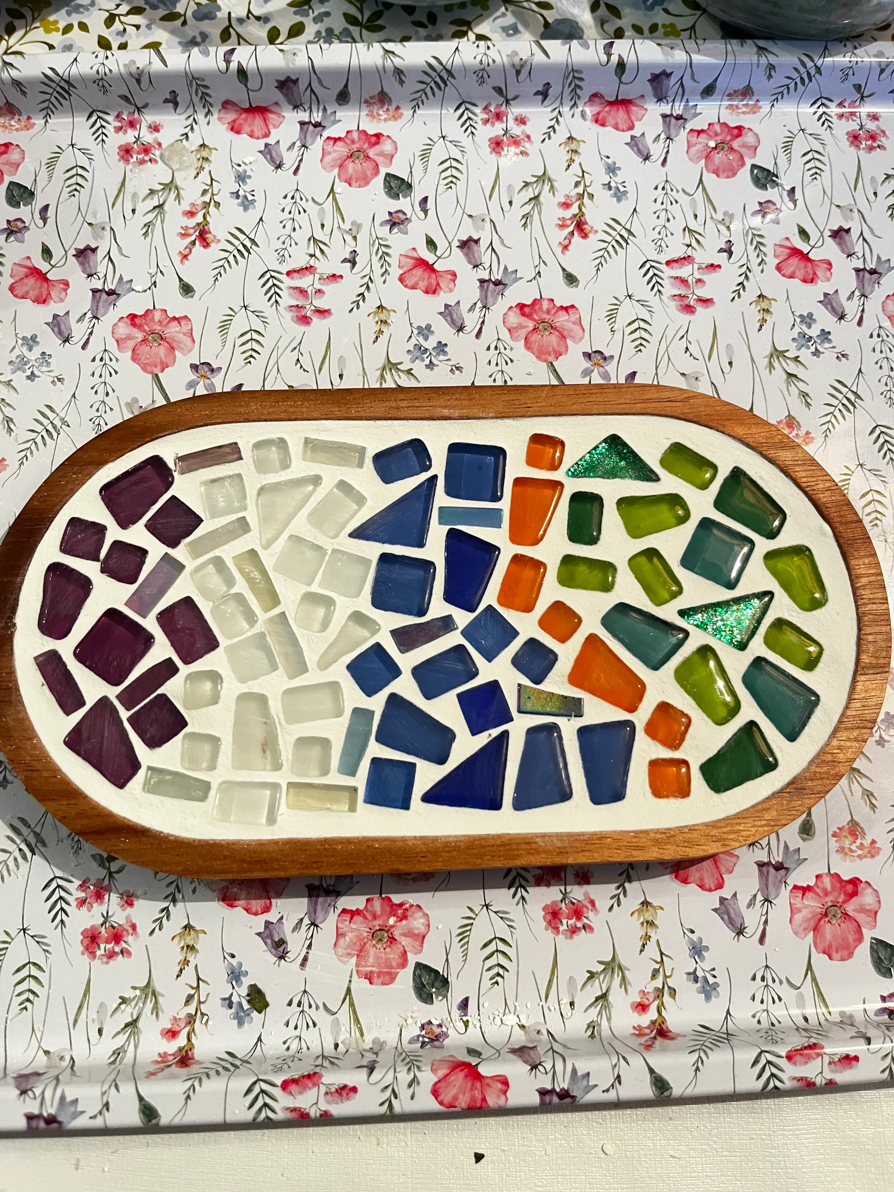 - Verfugen und Endbearbeitung: Wir werden deine Mosaikkunst verfugen und das Stück fertigstellen. Es wird ein bisschen chaotisch sein, aber das macht Spaß.