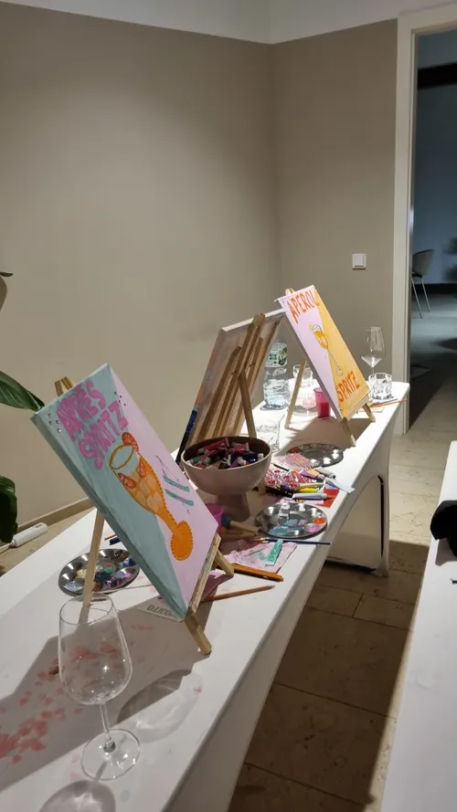 - Während des Malens genießt Du Musik und wählst aus einer Auswahl an alkoholischen oder alkoholfreien Getränken.