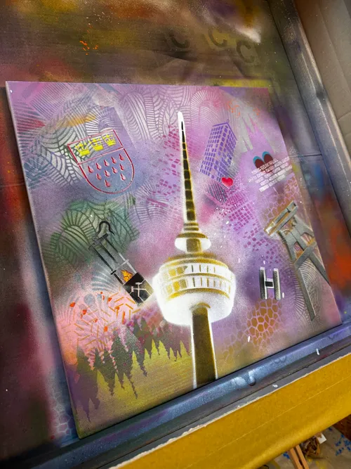 StreetArt-Graffiti mit Schablonen auf Leinwand in Köln