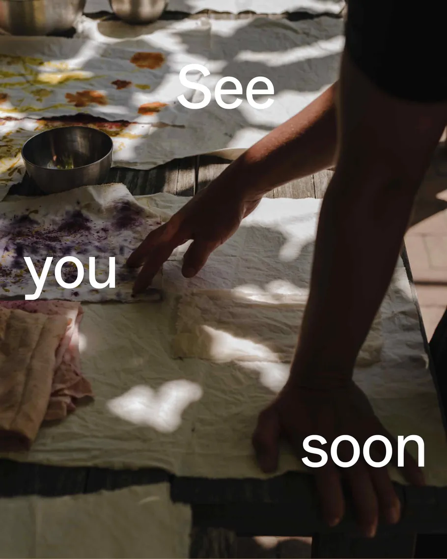 Clay Resist Dye ist eine traditionelle Färbetechnik, bei der eine Tonpaste auf Textil aufgetragen und anschließend in einer natürlichen Indigo-Küpe gefärbt wird – einem der ältesten Pflanzenfarbstoffe, bekannt für seine tiefblaue Farbe. Die Stellen mit Tonpaste bleiben hell. Mit verschiedenen Techniken kannst Du Muster und Kontraste erzeugen. So wird jedes Stück zu einem Unikat.