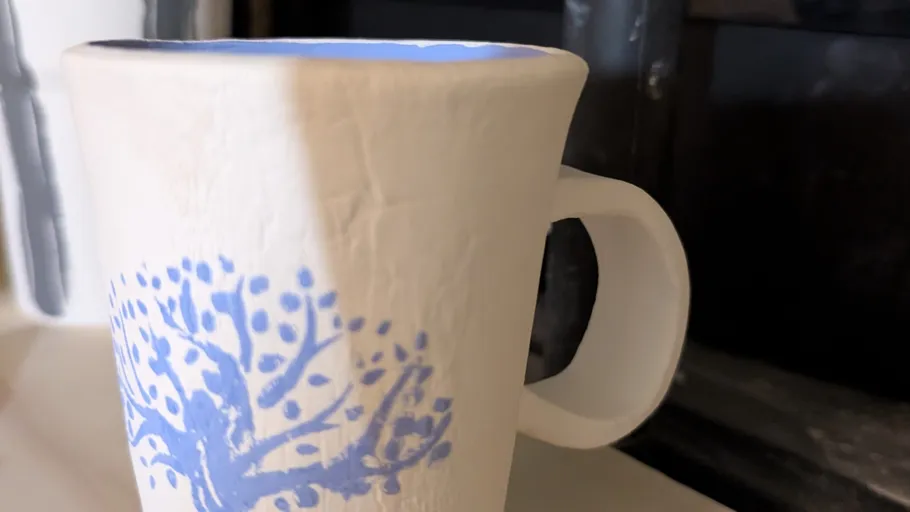 Nach dem Kurs übernehme ich das Trocknen, Brennen der fertigen Tasse.