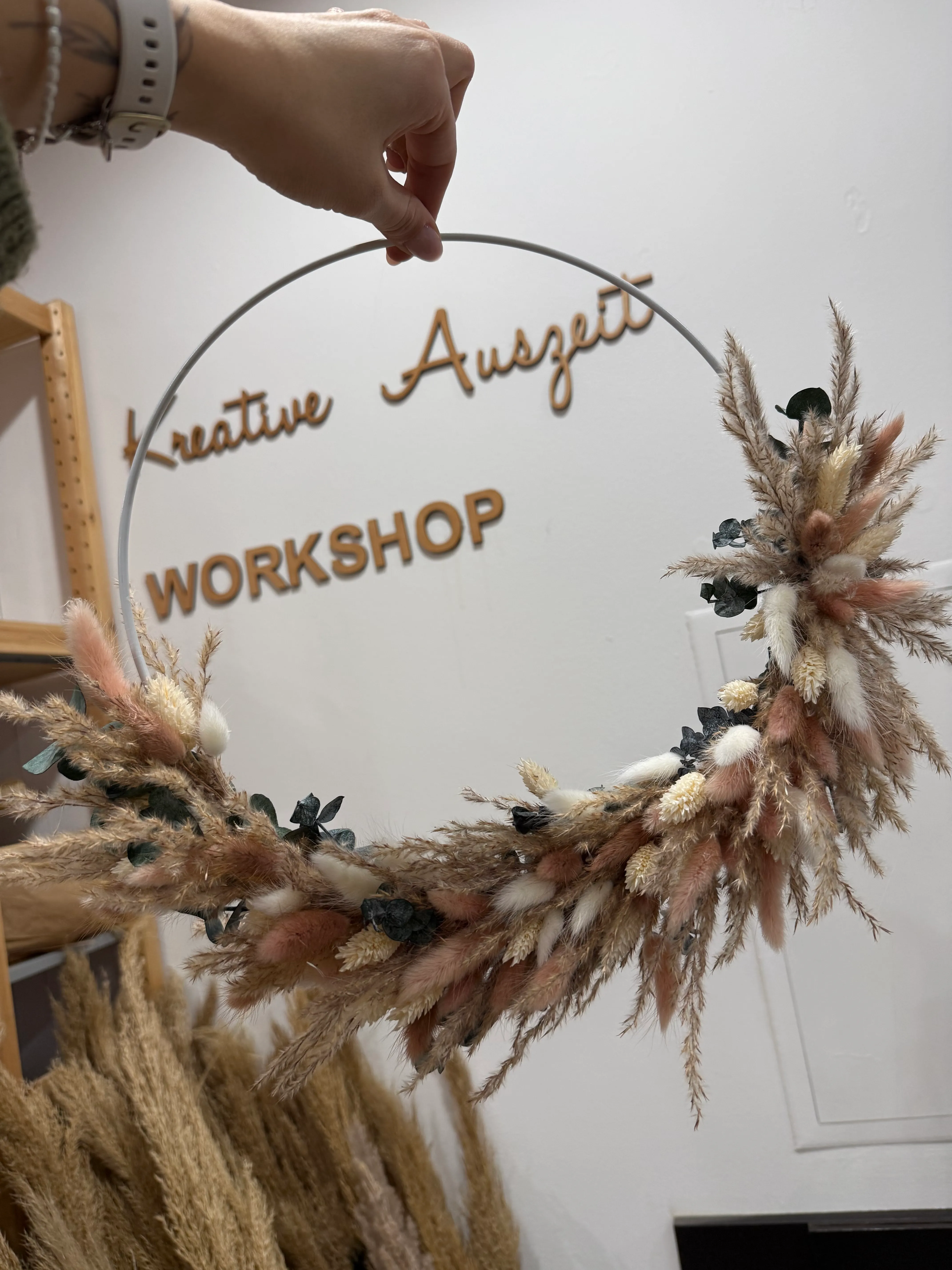 Trockenblumenkranz Workshop in Langenfeld - halb gebunden