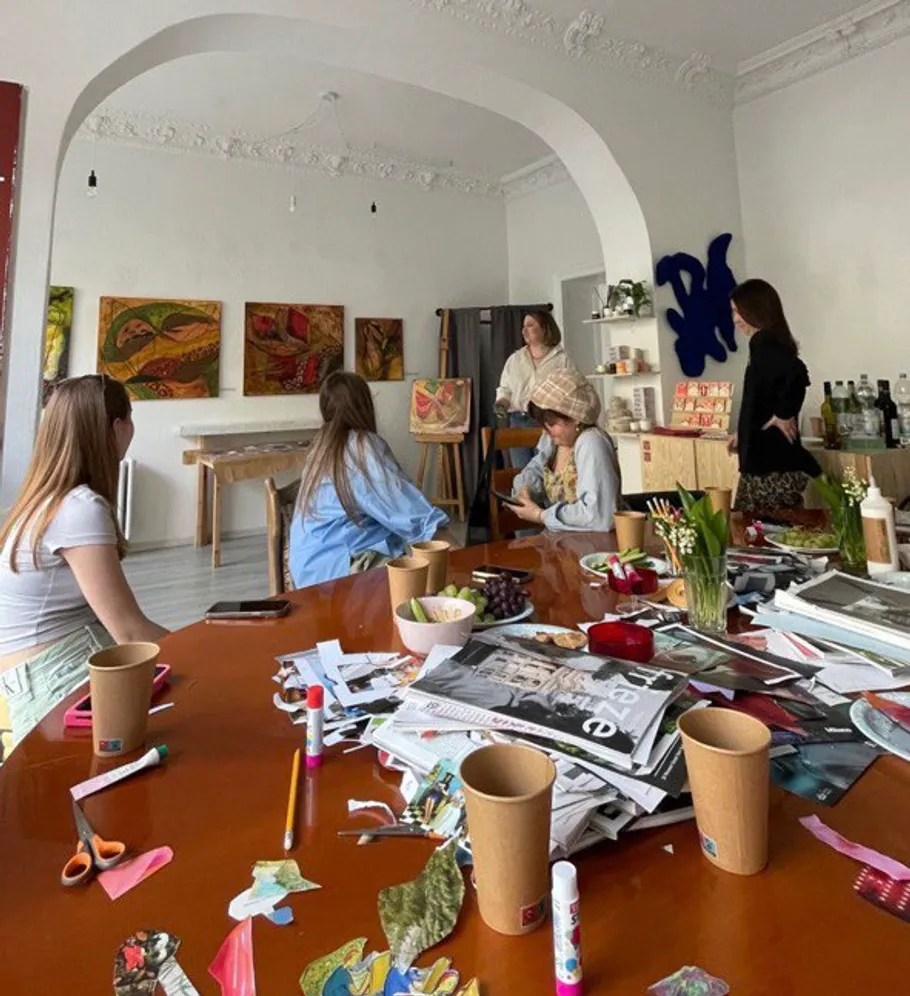 Wir beginnen den Abend mit einem Drink und etwas Zeit, um es uns im Galerieraum gemütlich zu machen. Bevor wir mit der Collage beginnen, machen wir eine kurze Reflexionsübung mit ein paar Aufforderungen, über das vergangene Jahr nachzudenken und darüber, was du ins Jahr 2026 mitnehmen möchtest. Es ist einfach, informell und soll dir helfen, deine Ideen zum Fließen zu bringen.