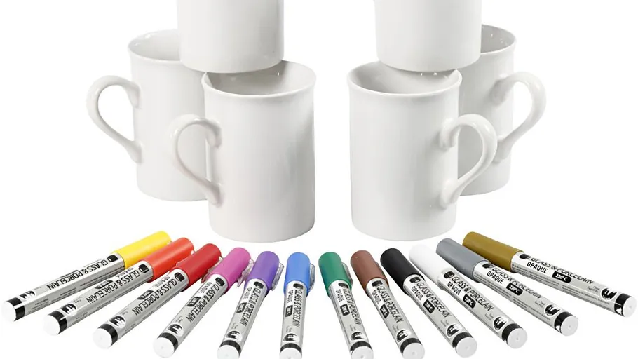 - Du erhältst ein komplettes Set mit 6 Porzellanbechern und Markern