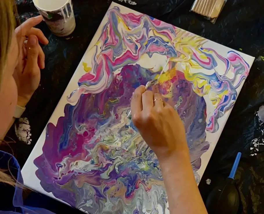 - Spachtel-Technik: Um Textur und Tiefe in Deinem abstrakten Bild zu schaffen, wird Farbe mit einem Spachtel auf den Maluntergrund aufgetragen.