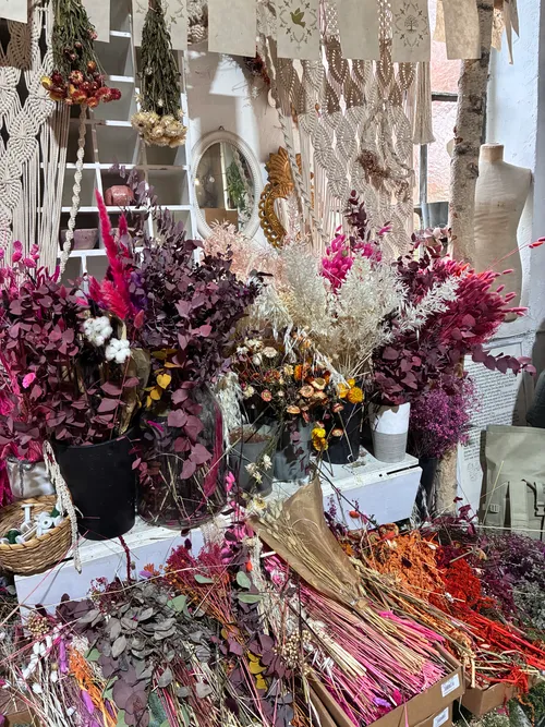 Es gab eine große Auswahl an Trockenblumen, sodass für jeden Geschmack etwas dabei war. Die Kursleiterin ist sehr nett gewesen und für das leibliche Wohl wurde auch gesorgt.
