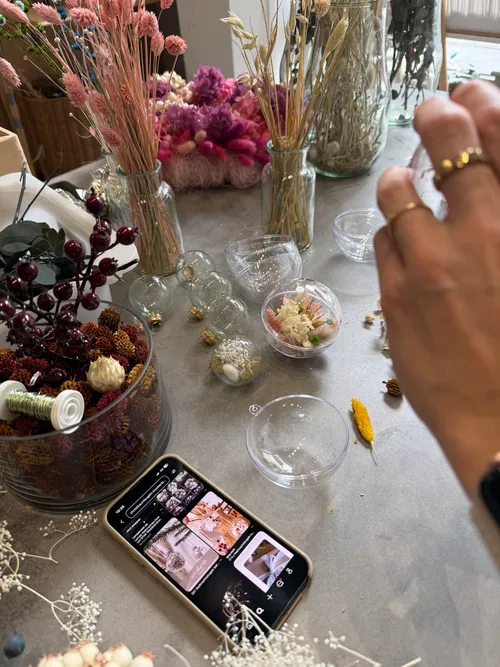 - Vor Ort findet man neben Trockenblumen und Kränzen auch Flower-Loops, ausgefallene Blütenbilder und noch viele weitere Produkte.