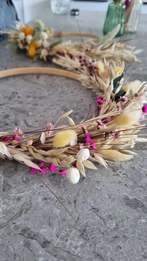 - Vor Ort findet man neben Trockenblumen und Kränzen auch Flower-Loops, ausgefallene Blütenbilder und noch viele weitere Produkte.
