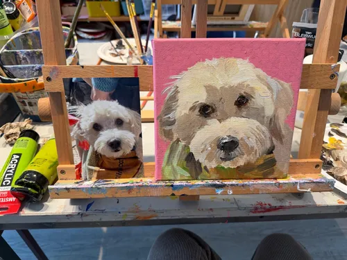 Die Kursleiterin war sehr freundlich und hat an den richtigen Stellen Hilfestellung geleistet, so dass wir zufrieden mit unserem Bild nachhause gegangen sind. Ich habe gelernt Acrylfarben zu mischen und Akzente zu setzen. Da Acryl...