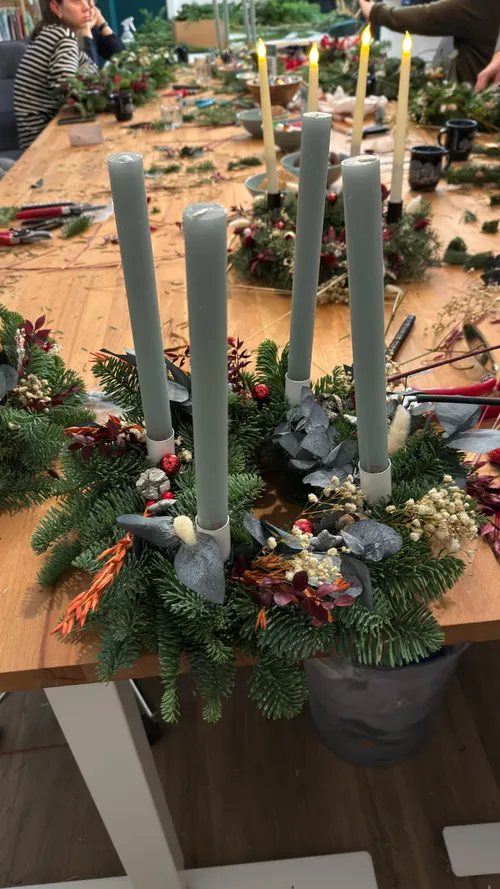 Du liebst Trockenblumen und möchtest darauf auch nicht im Adventskranz verzichten? Dann bist Du bei diesem Workshop in Berlin genau richtig. Hier lernst Du, wie Du aus Tanne und Trockenblumen einen zauberhaften Adventskranz kreieren kannst. Ob als Geschenk für Deine Familie oder Freunde oder als Blickfang für Deine Wohnung, dieser Adventskranz wird Dich begeistern.