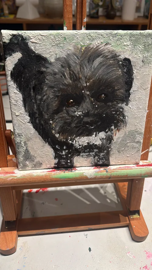 - If you don't know how to start or feel uncertain, you can email me a photo of the pet at least 2 days before the workshop. Then I'll make a preliminary sketch on the canvas.
