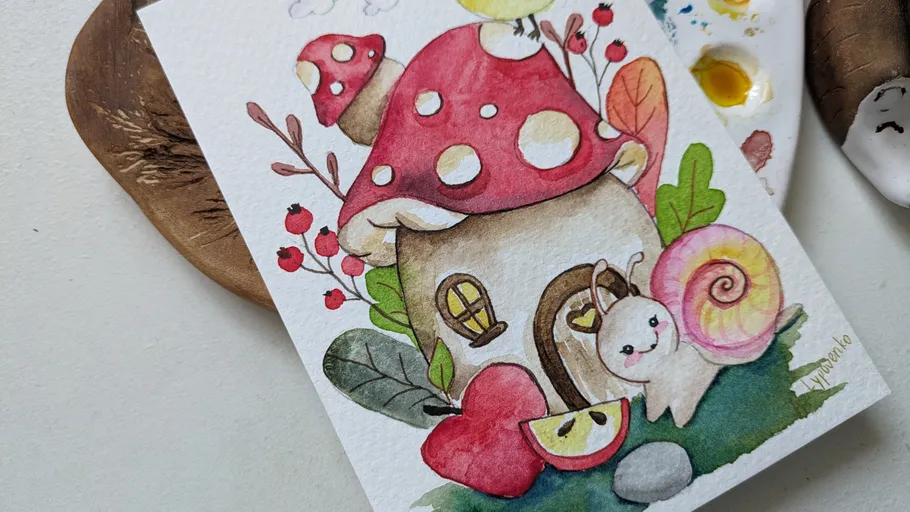 - Applying knowledge to the final work and painting a beautiful painting on an A4 or A5 or A6 watercolor paper. You can choose.