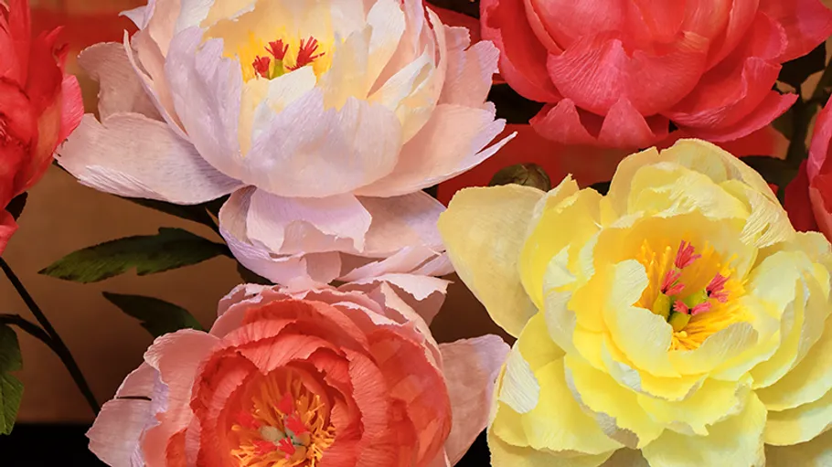 Dive into the magical world of paper flowers! In this creative flower workshop in Berlin, you will learn under professional guidance how to create beautiful, light-fast peonies out of crepe paper. We color the paper, work out all the details, cut it, process it with various tools and our hands until the wonderful flowers are created piece by piece and blossom.