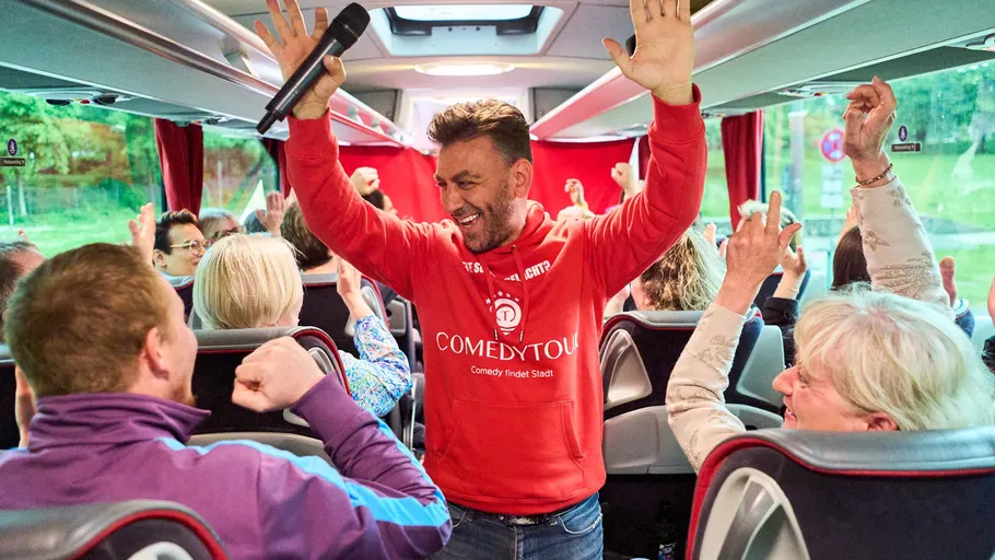 Our comedy tour combines sightseeing with live entertainment in a unique way. Instead of dry facts, a 90-minute show full of humor, spontaneous gags and surprising stories awaits you. A comedian will guide you through the city with charm and show you well-known sights from a completely new perspective. This creates a relaxed, exciting atmosphere in which laughter is guaranteed. Our fun mobile turns every trip into an interactive experience, where you're not just watching, you're right in the middle of it. Whether with friends, family or colleagues — the Comedy Tour stands for good humor, unforgettable moments and city experiences that you won't soon forget. Get on board and enjoy entertainment on wheels!
