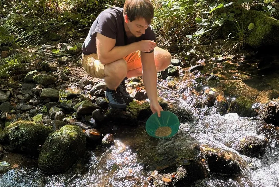 Was Dich erwartet: 100 Prozent Praxis statt trockenem Frontalunterricht. In einer kleinen, persönlich betreuten Gruppe bekommst Du eine klare Schritt-für-Schritt-Anleitung und direktes Feedback. Du lernst die Goldpfanne richtig zu halten, entwickelst einen sicheren Schwenk- und Spülrhythmus, trennst Leicht- von Schwermineralen und erkennst typische Ablagerungen im Bachbett. So gehst Du mit einem festen Ablauf und dem Know-how nach Hause, eigenständig weiter nach Gold zu suchen.