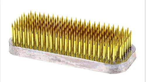 Der Kenzan ist ein Blumensteckigel, in den das Pflanzenmaterial gesteckt wird. Größe 87mm x 33 mm. Material: Blei und Messing.