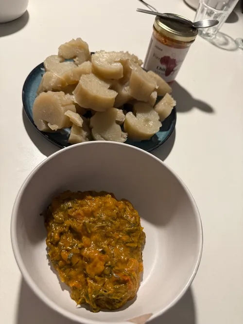 Once a week, I would like to “invite” you to dive deep into traditional Congolese cuisine with me as part of a cooking class. Let's start with my favorite food: Fumbwa, also known as oko or eru, is a leafy vegetable with a very high protein content and similar in taste to spinach.
