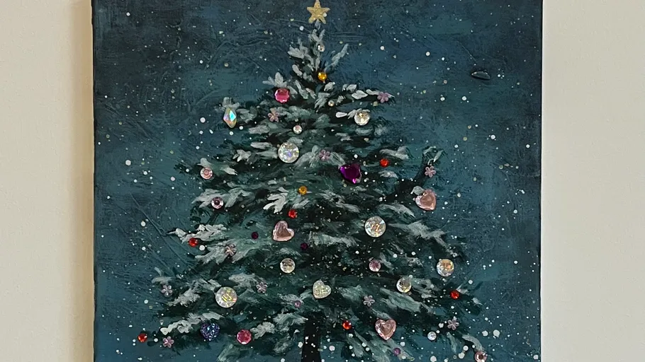 Acrylic workshop for children during winter holidays: painting a Christmas tree