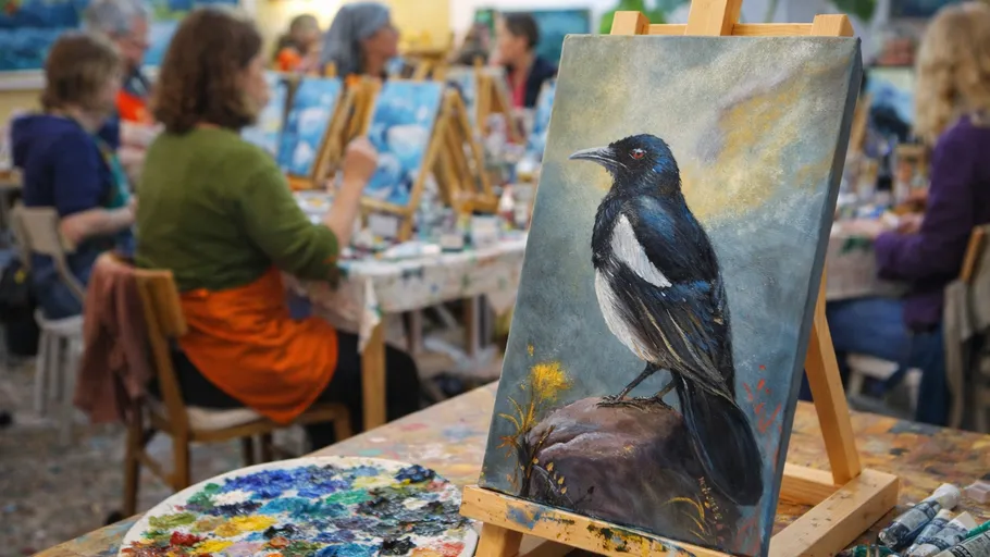 In this painting workshop in Berlin, you will bring the motif “We paint a magpie” onto the canvas step by step. Under the guidance of a passionate artist, you develop your creative potential and paint your own masterpiece — without pressure and in a relaxed atmosphere. It's not about perfection, but about having fun with the process and discovering your own creativity.
