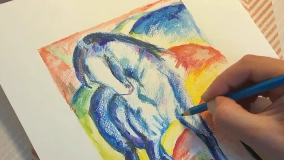 We meet at 10:00 in the Kunstatelier Michel. There you will learn how to sketch with pencil easily and easily. We then work out these sketches in the Blue Rider style with colored pencils and watercolors. At noon, we go to the Pasing factory together for about an hour to eat.