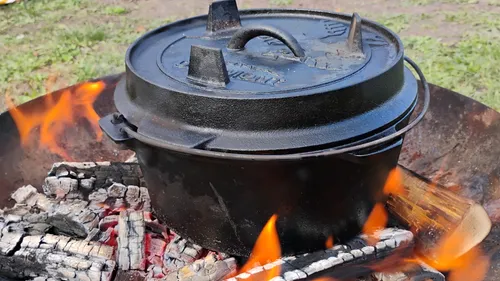 Cooking is done in a Dutch oven — a cast iron pot that stores heat intensively and provides particularly aromatic results.