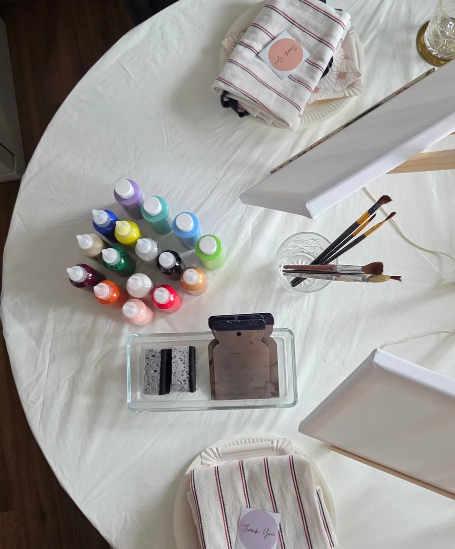 In about 1.5 hours, you will paint your unique, personal work of art with acrylic on canvas.