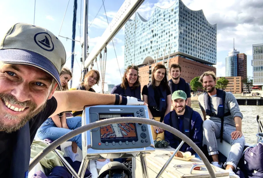This private sailing trip is ideal for groups of 1 to 12 people. It is perfect for bachelor parties, birthdays, family events and romantic occasions such as marriage proposals. Groups of friends and visitors to Hamburg who want to experience the city exclusively from the water are also in the right place here. No previous experience is required.