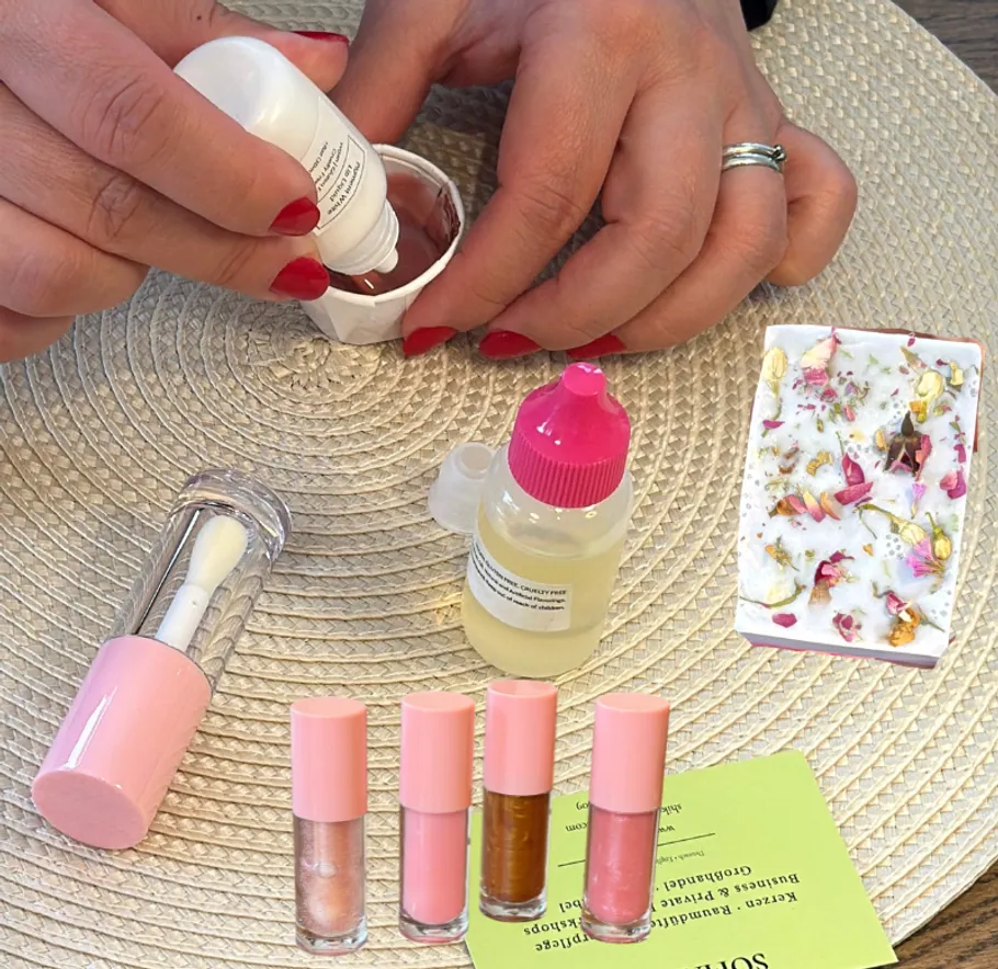 With lip gloss, you combine pigments and aroma oils to create your perfect shade and taste.