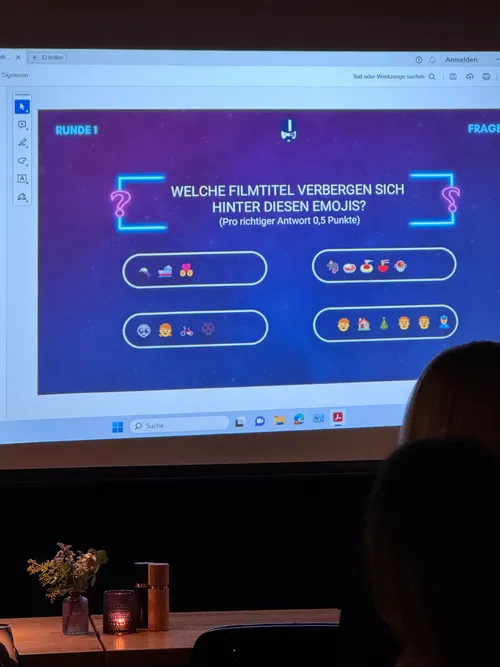 The popular “Pub Quiz Night” offers participants a great mix of different quiz questions (knowledge questions, guessing songs, truth-or-lie statements, guessing tasks, recognizing well-known personalities, etc.), which must be answered in teams.