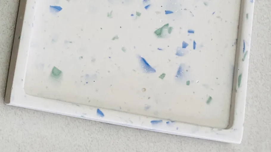 - After the drying period, the works are sanded and sealed together so that you can take home your individual, modern terrazzo piece