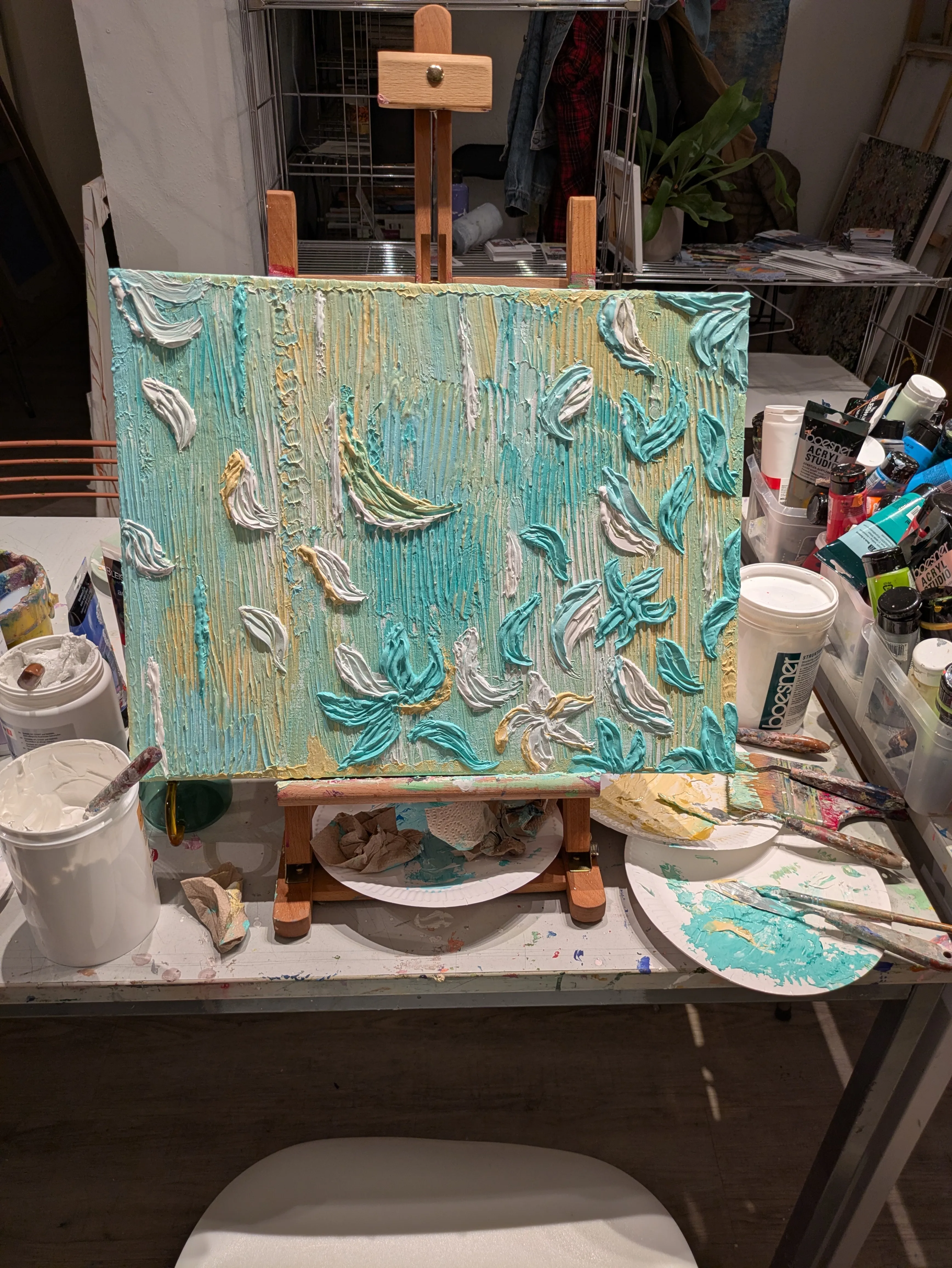 The course takes place in the artist's current studio — a spacious and cozy room where you will have the special experience of painting together with the artist.