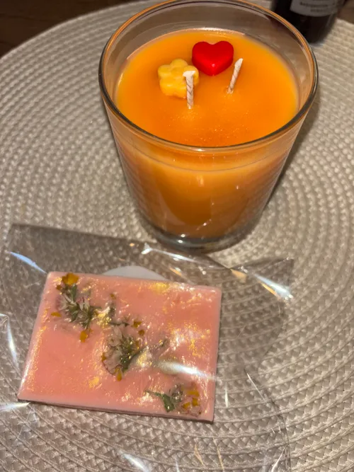 I took part in the candle workshop with a friend and it was just super nice! With essential oils and soy wax, we were able to design our own candles — including cute wax molds on top. Relaxing music was playing, there was tea, fruit, cookies and the organizer was incredibly welcoming. A loving, creative atmosphere — highly recommended!